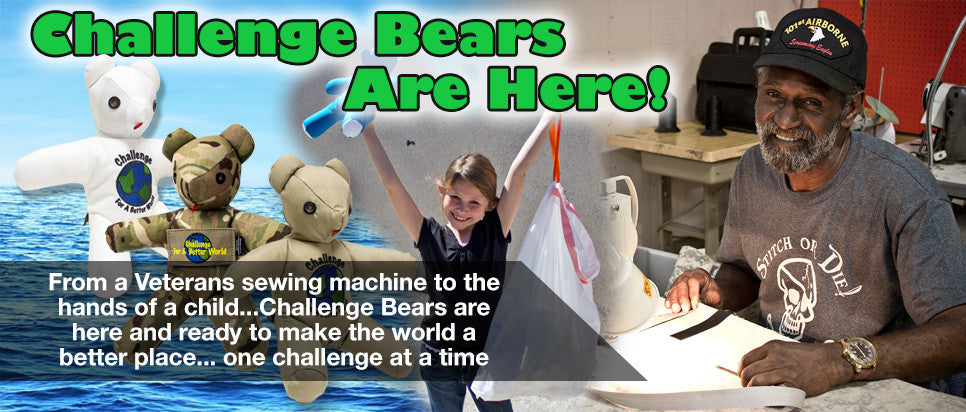 GreenVets LA is a non-profit vocational rehabilitation program that provides job training for returning Veterans. Working closely with the West Los Angeles V. A. Hospital, both injured and non-injured Veterans are offered a wide variety of job training in this program. We are currently training and paying returning Veterans to sew Challenge Bears, sew and silk screen reusable shopping bags as well as T-Shirts. This has had a big impact on our environment and economy. Every part of our manufacturing process is done locally in Los Angeles, CA. We are proud to help our L. A. work force and local economy while also helping the environment by greatly reducing our carbon footprint.